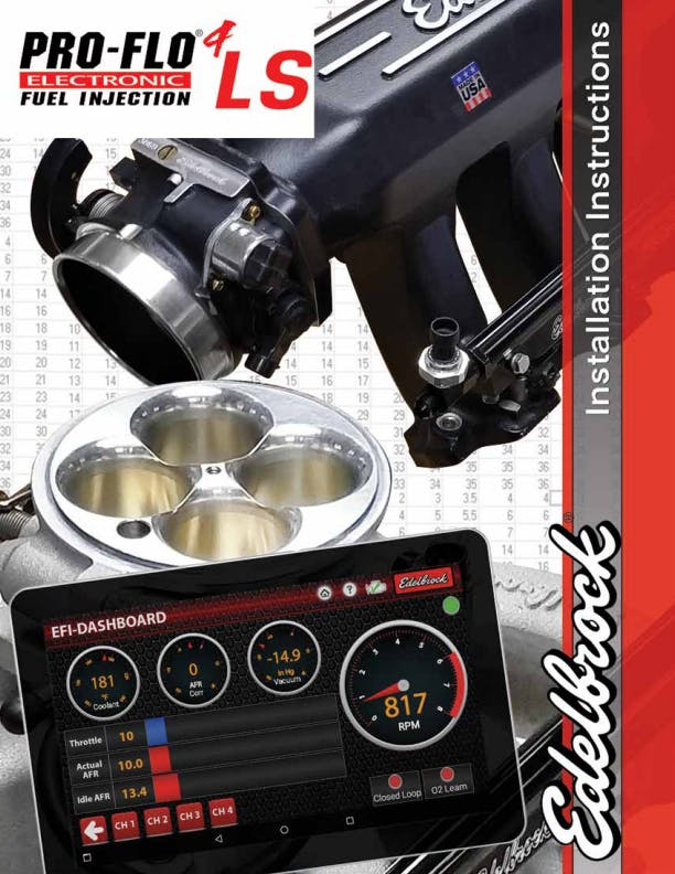 The Edelbrock Pro-Flo 4 #35710 for Chevrolet LS GEN III/IV engines is equipped with the latest in technology and features. The EFI system comes complete with a traditional 4150-Style satin finish Victor Jr. cathedral port single plane intake manifold and 35 Lb/Hr injectors capable of 550 HP with 58 p.s.i. fuel pressure. The new Pro-Flo 4 EFI systems feature an all-new ECU with a faster processor, a water proof design and measures half the depth of the previous ECU. It also has an upgraded Bluetooth chip that is faster, more reliable and will not drop connection. We've added more features for the advanced tuner giving you control over air-fuel ratios, ignition curve, idle speed, acceleration fuel, coolant fans, Rev limiter while retaining the simplicity Pro-Flo is known for. The key to the system is our exclusive E-Tuner 4 app with dyno developed base calibrations. The E-Tuner 4 app uses a Bluetooth wireless connection to communicate with the ECU's self-learning capability to continually adjust the calibration to get the maximize performance of your engine. E-Tuner 4 features a simple and easy to use setup wizard to help you get started as well as multiple dash displays so you can monitor your engines vitals and performance. The exclusive Edelbrock E-Tuner 4 app is Free and Available for Android and IOS based smart phone or tablet.